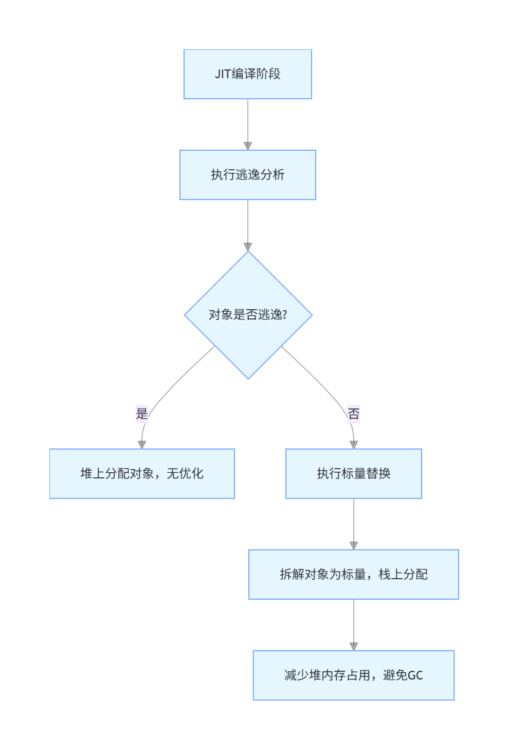- 标量替换是优化手段 :基于 "对象无逃逸" 的结论,将聚合量对象拆解为标量,栈上分配,核心价值是减少堆对象创建、降低 GC 压力;
