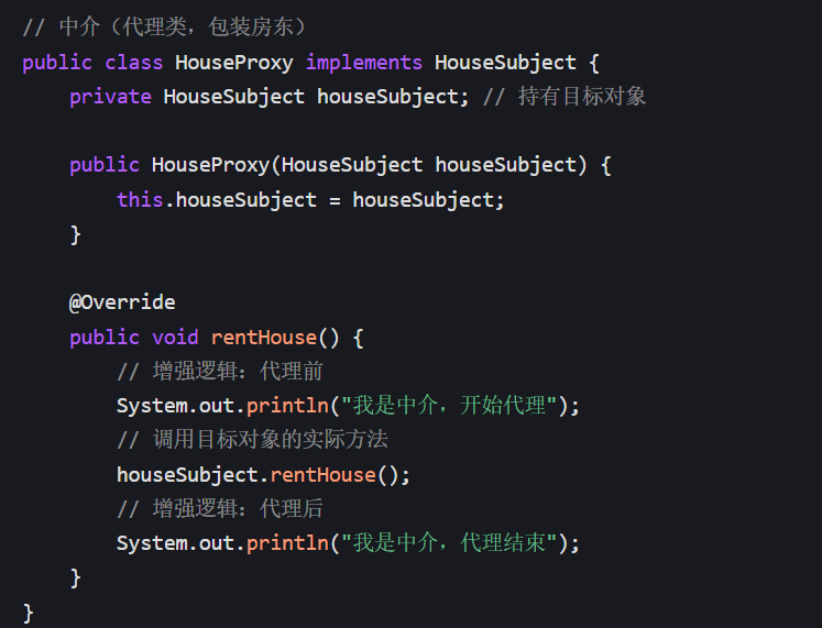 .class文件在程序运行前就已存在(比如HouseProxy是提前写好的); - 功能增强:不修改目标对象代码,通过代理类实现 "附加逻辑"(符合 "开闭原则");