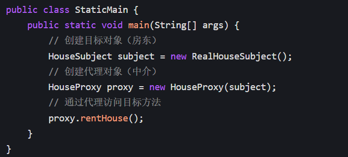 | 静态代理 | 提前写死代理类(一个目标对象对应一个代理类) | 给房东 A 写个专属中介,给房东 B 写另一个专属中介 |