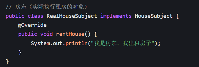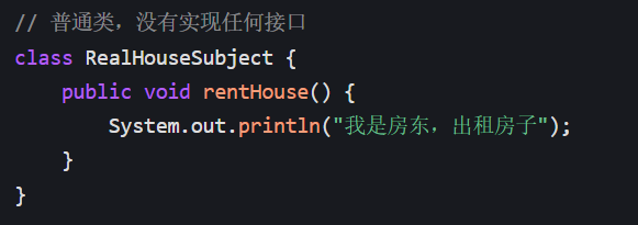 RealHouseSubject没实现任何接口,但会干 "租房" 这个活; - 代码对应: