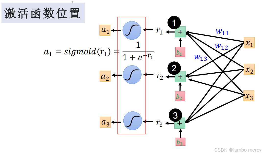 激活函数的位置紧接在线性变换(加权求和)之后。