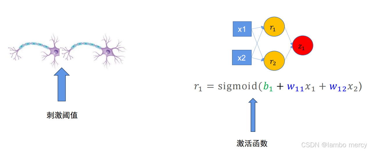 那大脑神经中有刺激阈值,那么计算机中也有所谓的激活函数:大脑神经中的刺激阈值作用在 两个生物神经元中间,超过就传递。而计算机中的神经元也是作用在节点和节点之间的,有两种状态分别是抑制状态和激活状态。
