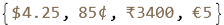 Out[]={"$5", "€5", "¥5000"}