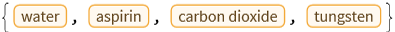 In[]:=Interpreter["Chemical"][{"H2O", "aspirin", "CO2", "wolfram"}]