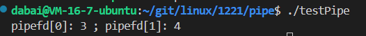 // cout << "pipefd[0]: " << pipefd[0] << " ; " << "pipefd[1]: " << pipefd[1] << endl;