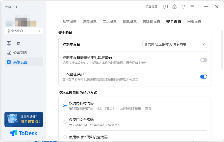 可开启"二次验证"功能,进一步提升远程连接的安全性。