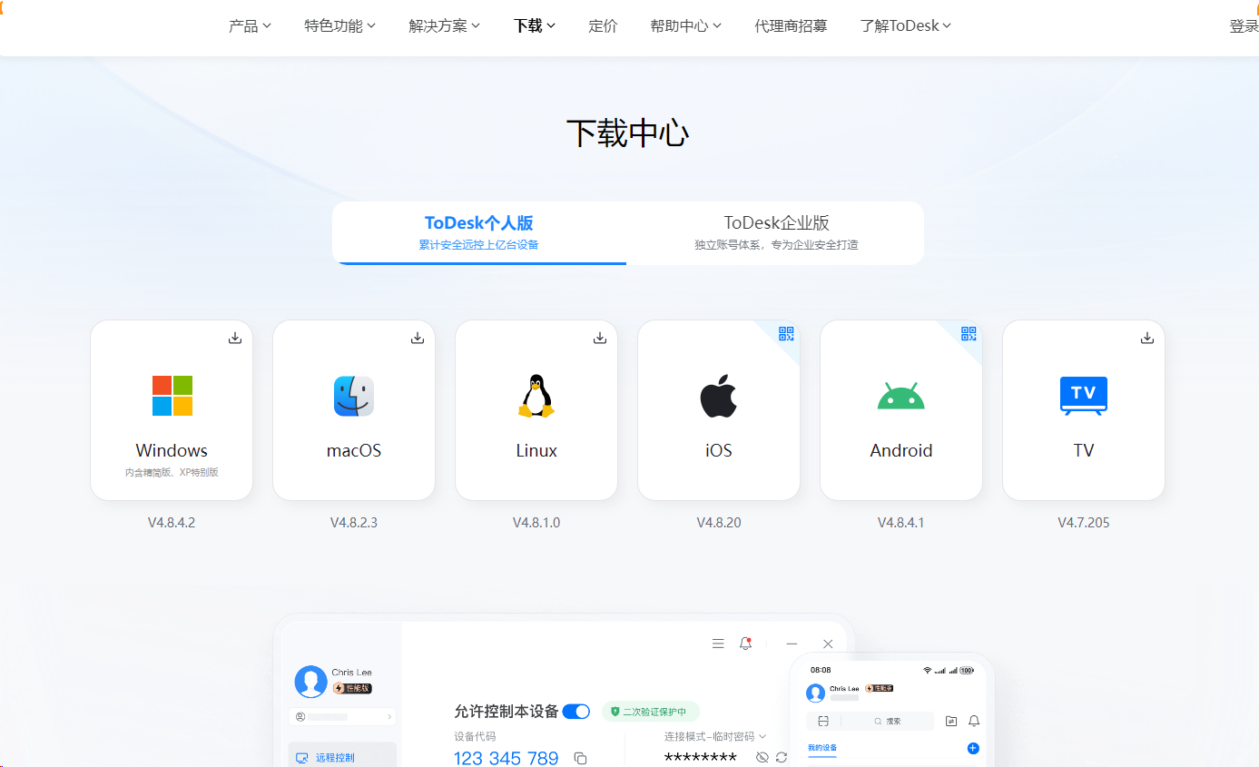 访问ToDesk官网,进入"下载中心"。