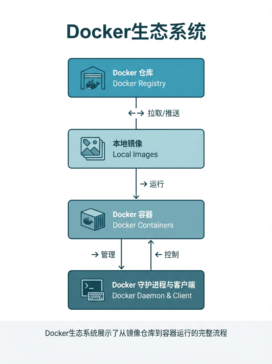 Docker 仓库:存储和分发镜像的地方(如 Docker Hub)