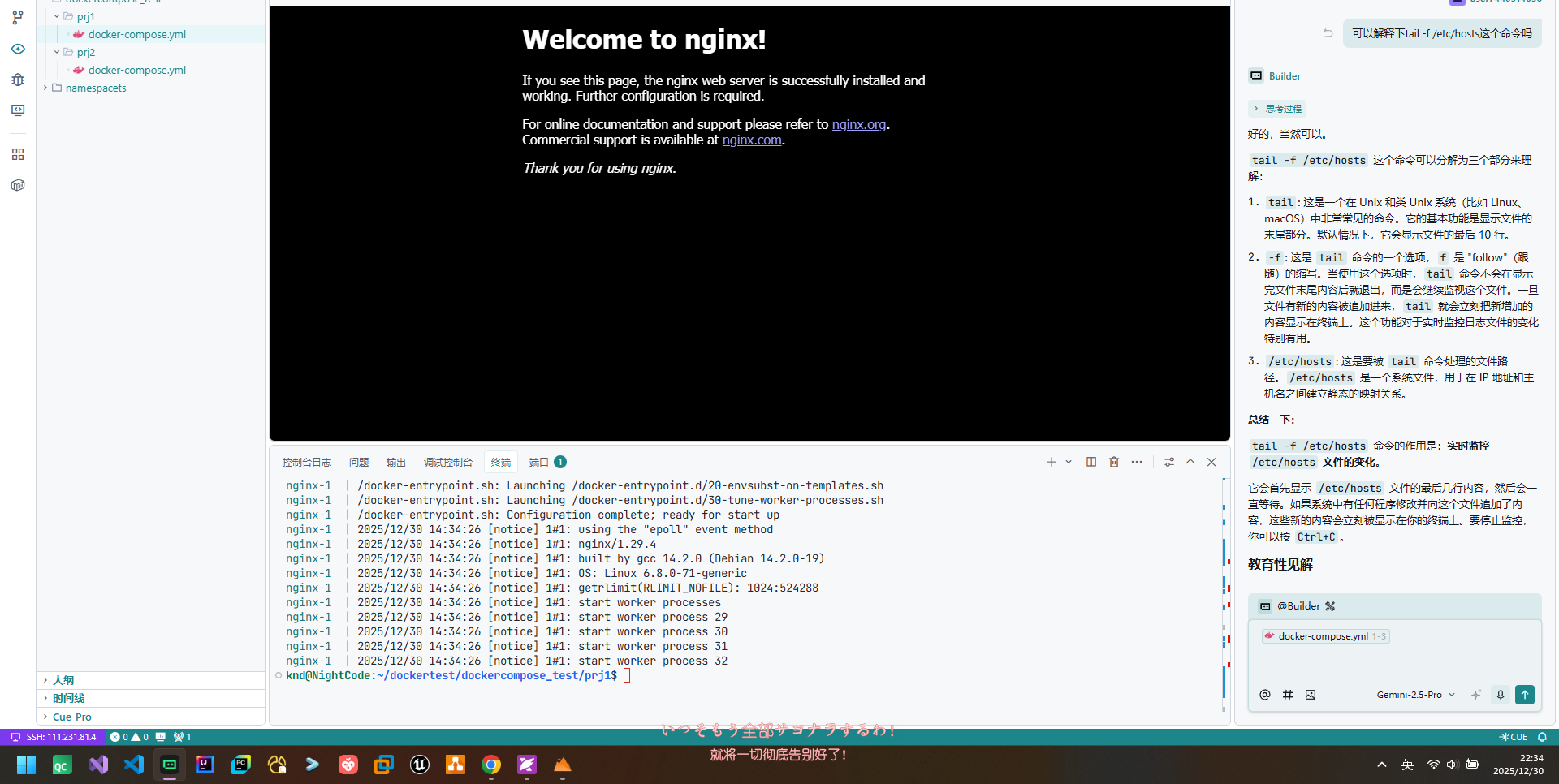 - 最后,执行 docker compose up 命令来启动并运行整个应用程序。