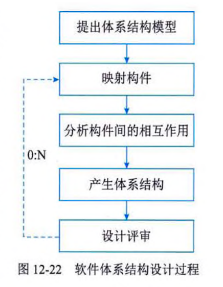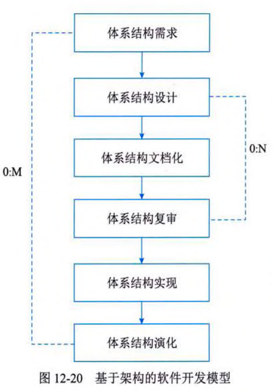 (4)架构复审:由外部人员(独立于开发组织之外的人,如用户代表和领域专家等)参加的复审,复审架构是否满足需求,质量问题,构件划分合理性等。若复审不过,则返回架构设计阶段进行重新设计、文档化,再复审。