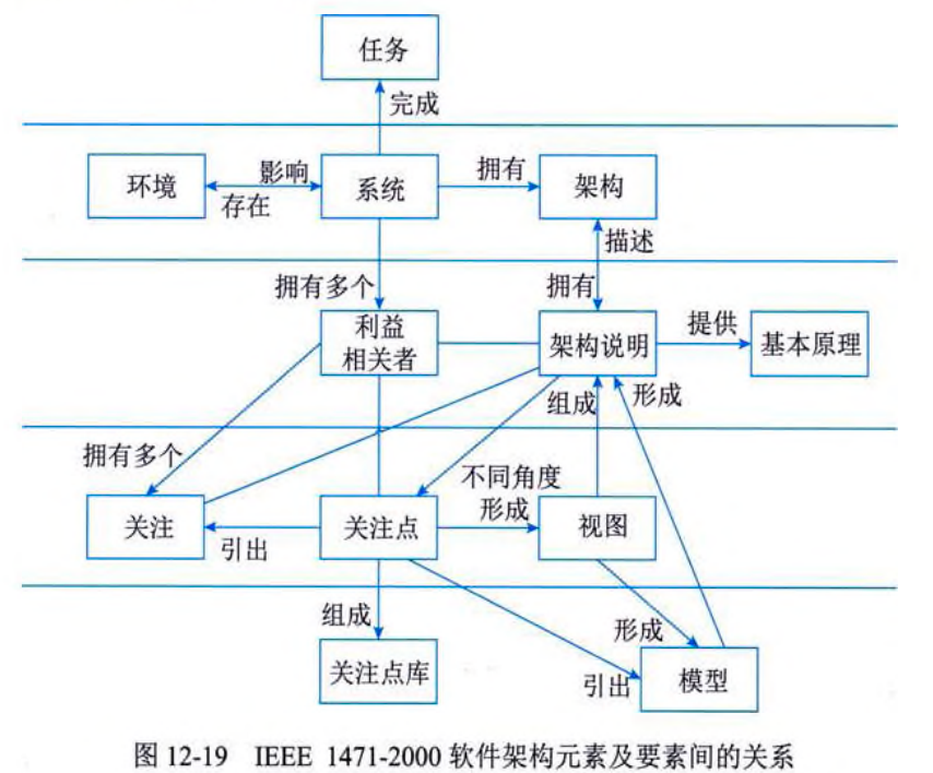 IEEE1471-2000定义了以下软件架构标准要素之间的关系,具体分为5个层次: