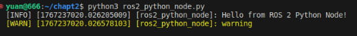 node.get_logger().warn('warning')# 打印警告信息