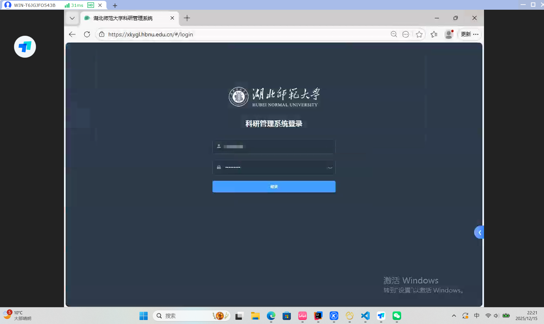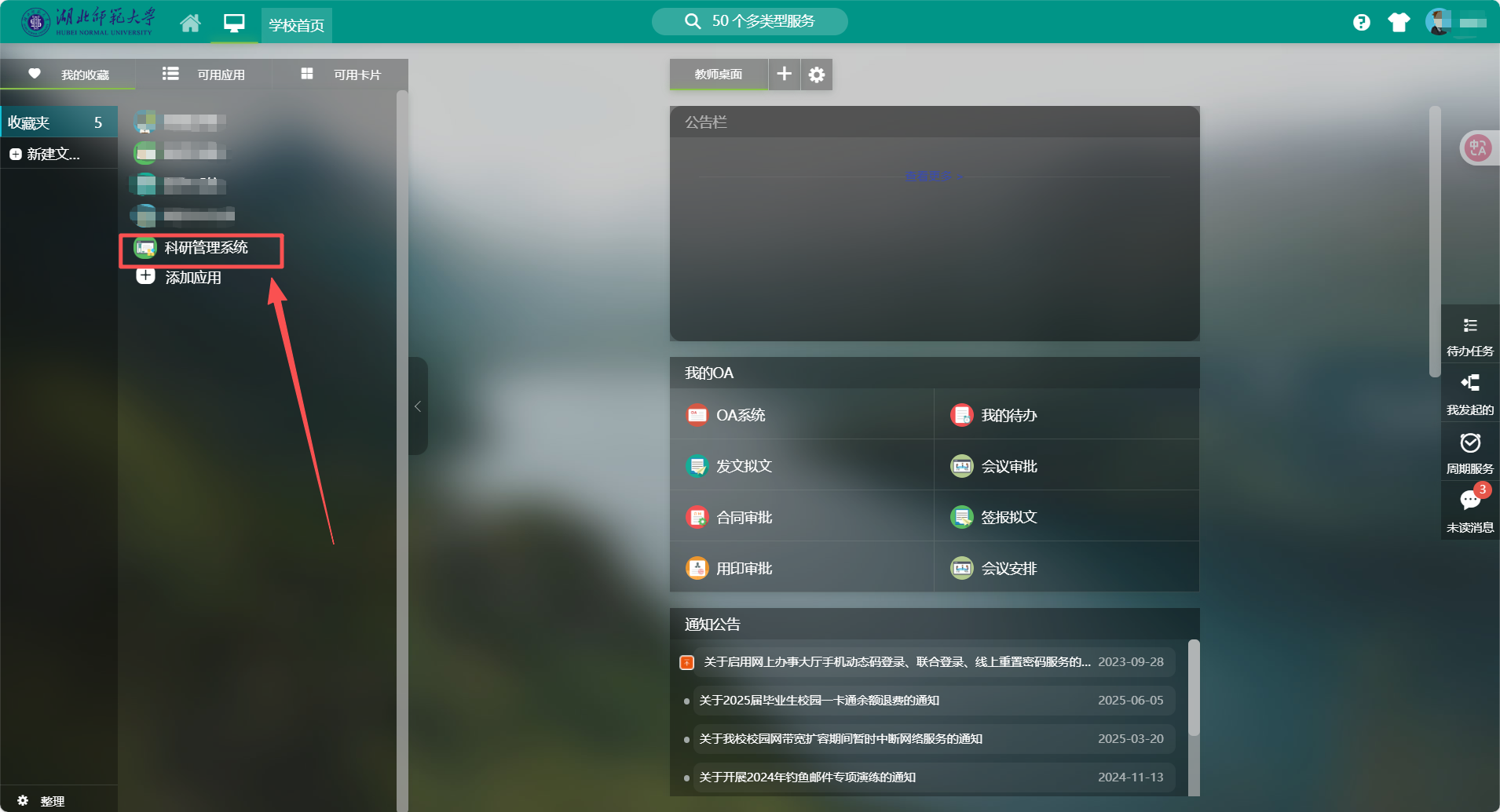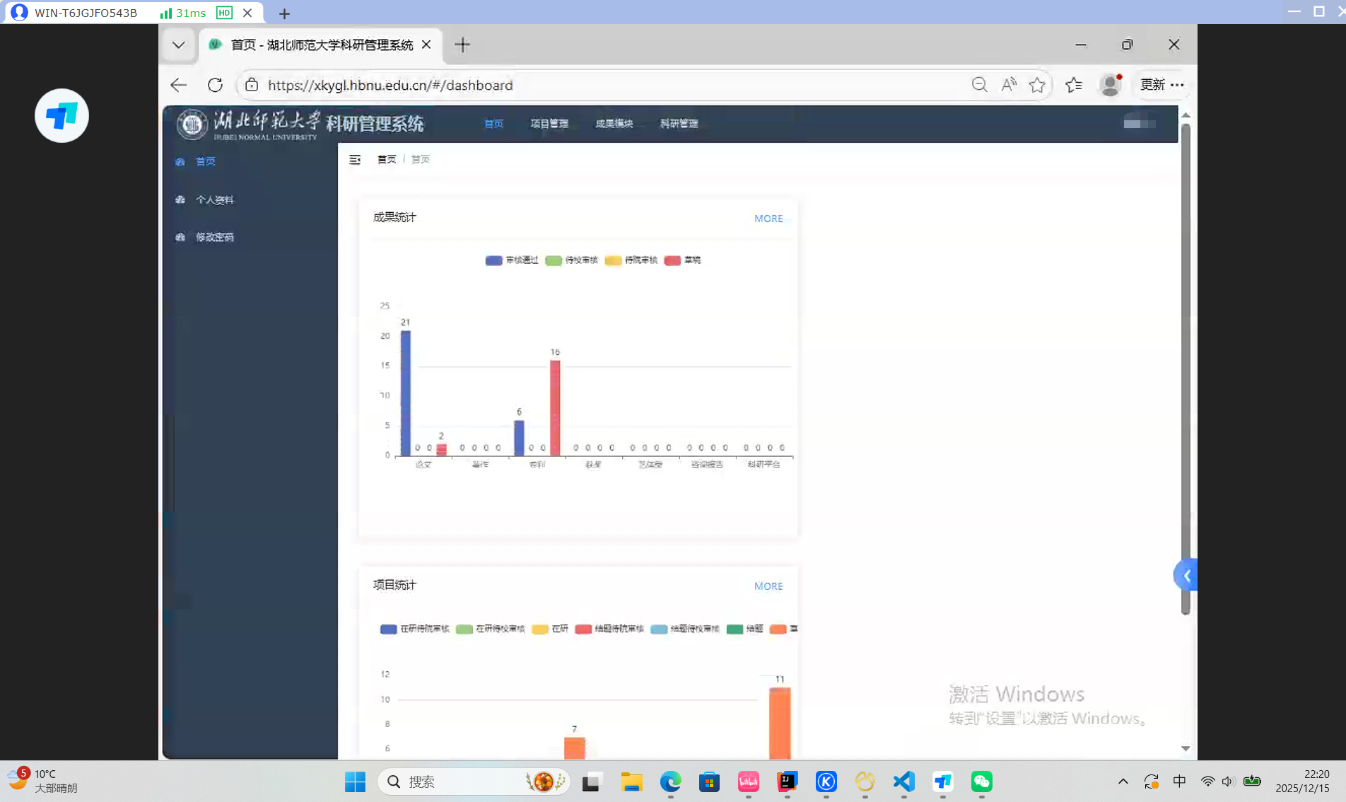 4.1.3点击科研管理系统,自动登录到了首页,且是本人账号