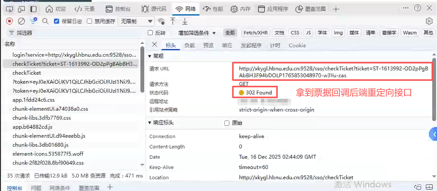 实际验证票据的service:前端拿到ST后,调用后端接口**(如http://xkygl.hbnu.edu.cn:9528/sso/user-info)**,此时后端的CAS过滤器会自动以"后端接口地址"作为service,向CAS服务端发起验证。