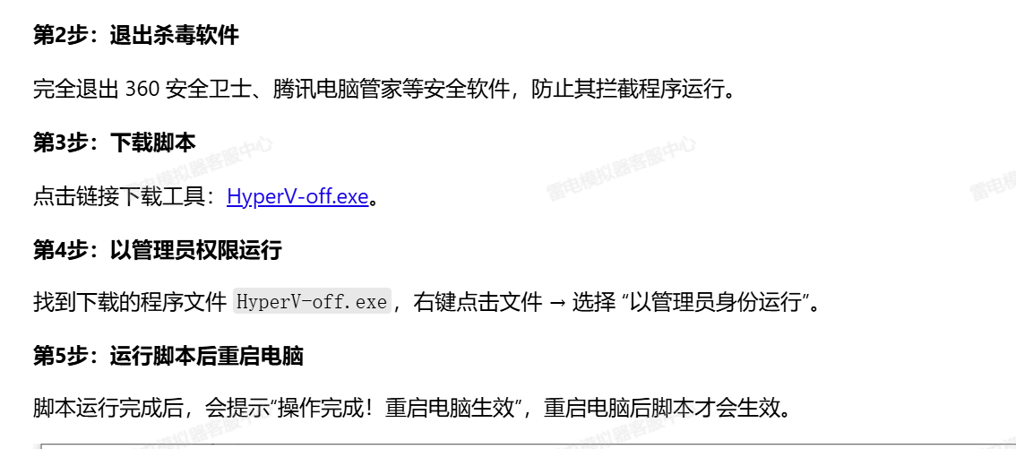 最终解决问题的办法是:https://help.ldmnq.com/docs/xu-ni-fu-wu-hyperv-guan-bi-jiao-cheng