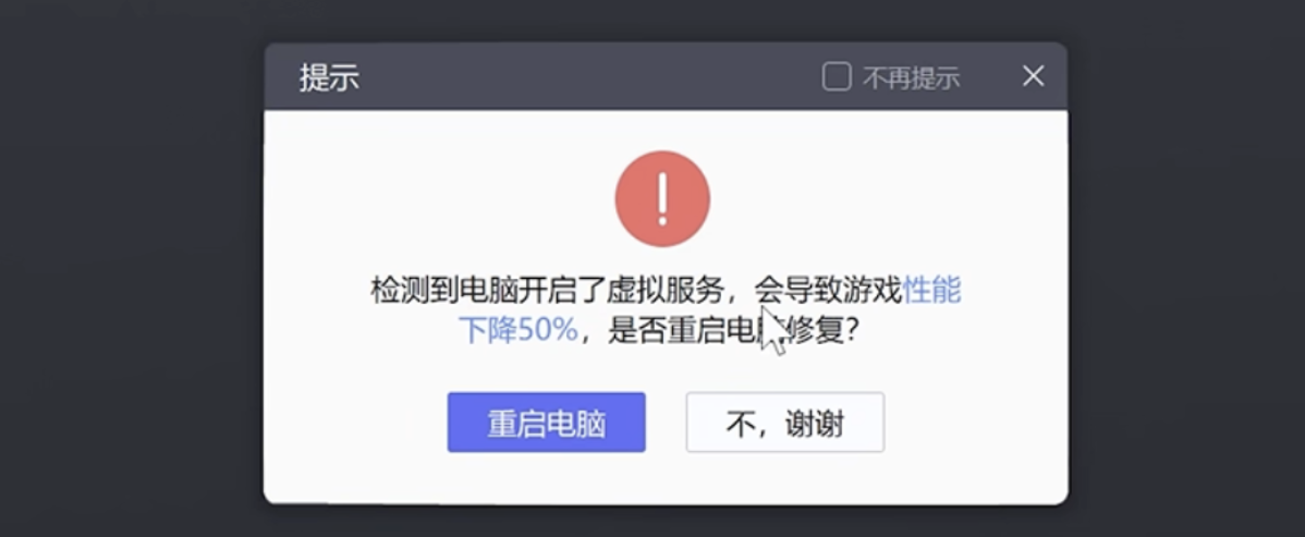 下载雷火模拟器,安装之后,点击程序,会自动弹出修复虚拟化的bug,这也是一种方案,我使用了之后没有反应,所以就参考了雷火模拟器修复失败的办法, 也是我最终的解决方案