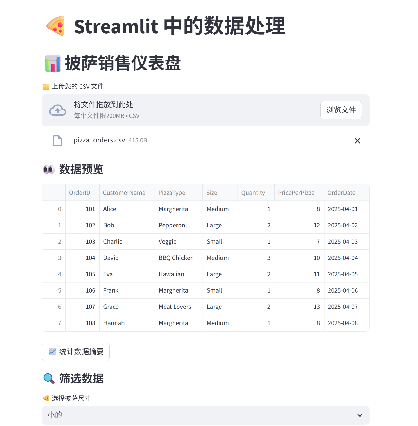 - 显示大标题:"Pizza Order App🍕"。