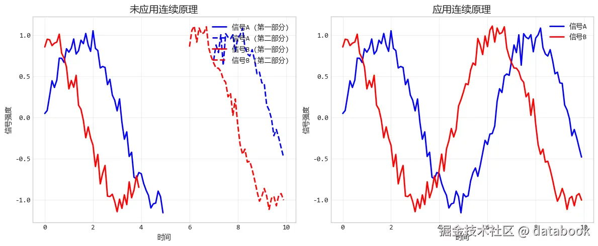 ax1.plot(time[60:], signal2[60:], 'r--', linewidth=2, label='信号B (第二部分)')