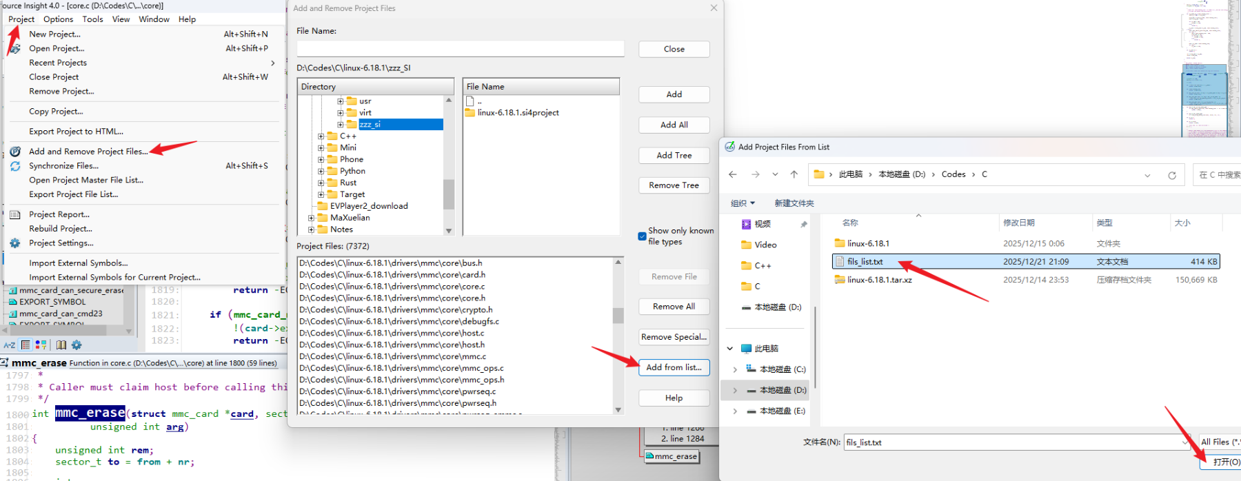 五、用 files_list 导入文件 Linux 源码到 source insight