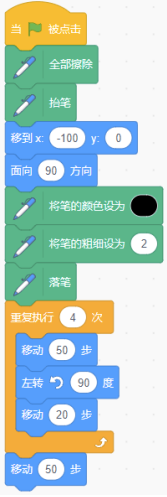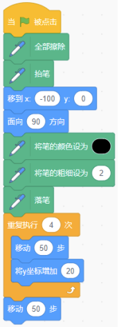 下列哪个选项的scratch程序可以绘制出如下图所示的台阶图案?( )