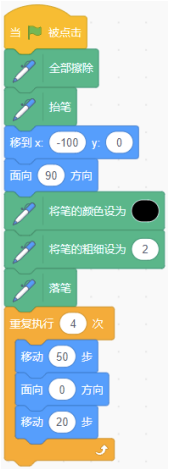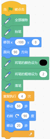 要画出如下图所示的图形,scratch程序空白处从上往下应填写?( )