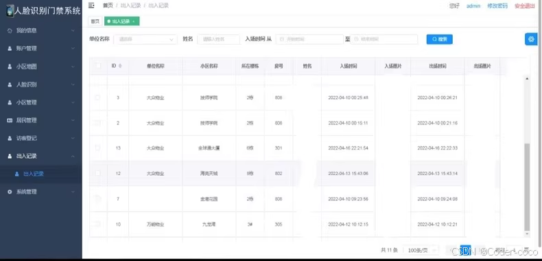 基于springboot + vue小区人脸识别门禁系统
