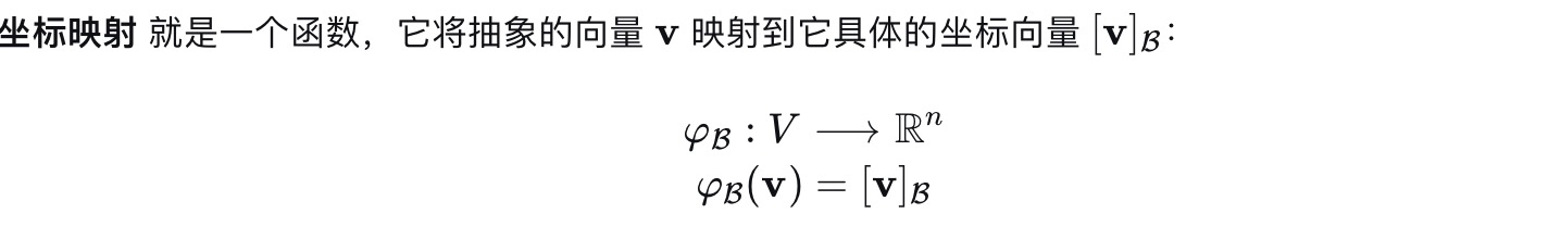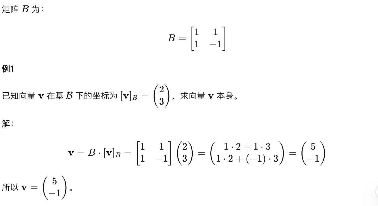 - [v]b是向量v在B中的坐标向量(列向量)