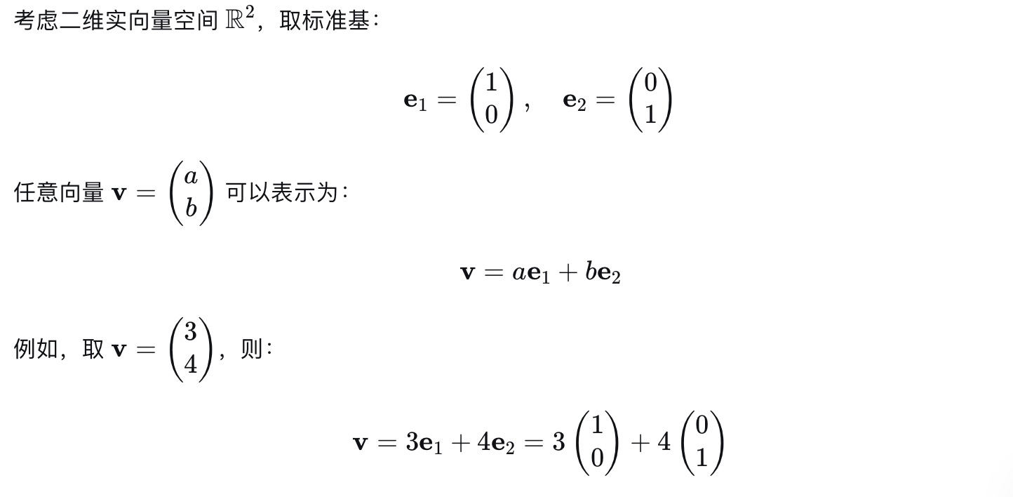 向量空间R^n的基向量B: {v1, v2, v3...vn}, R^n空间中的向量都可以用基向量唯一表示