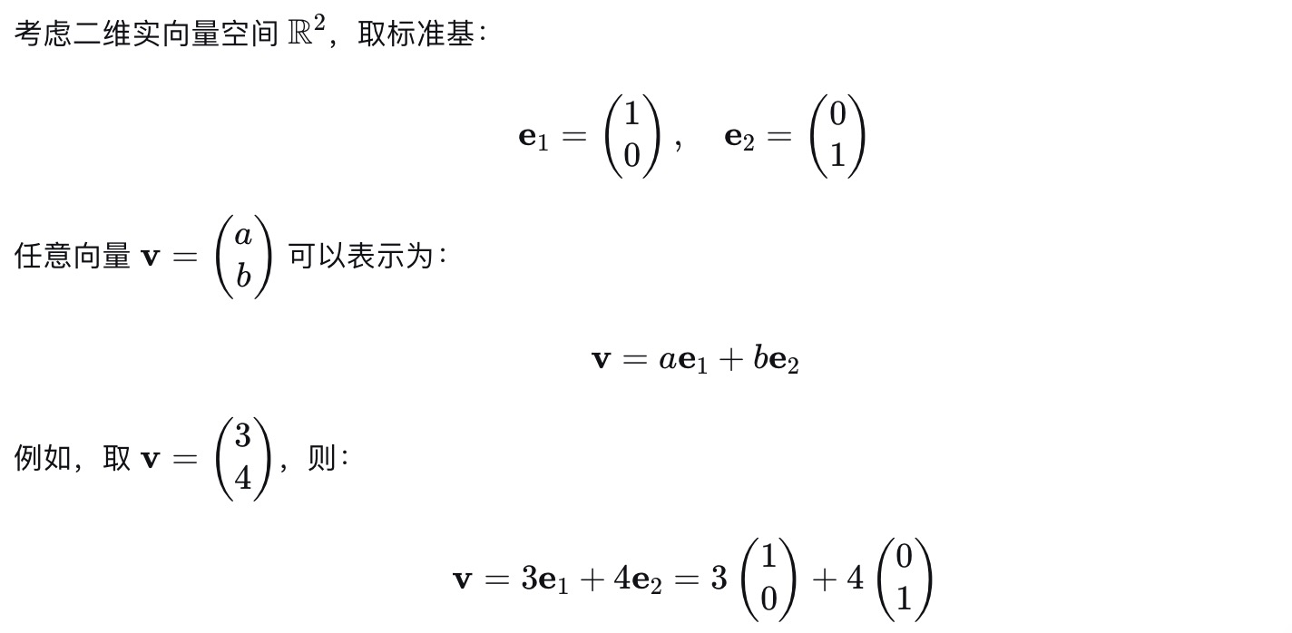 v∈V都可以唯一地表示为这些基向量的线性组合