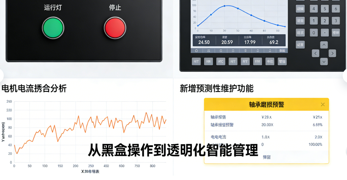 在信息显示上要实现质的飞跃。比如,把原来简单的"运行/停止"灯,升级成实时的功率曲线和能耗统计;把单一的故障报警灯,变成带历史记录、可能原因和处理建议的智能报警列表。