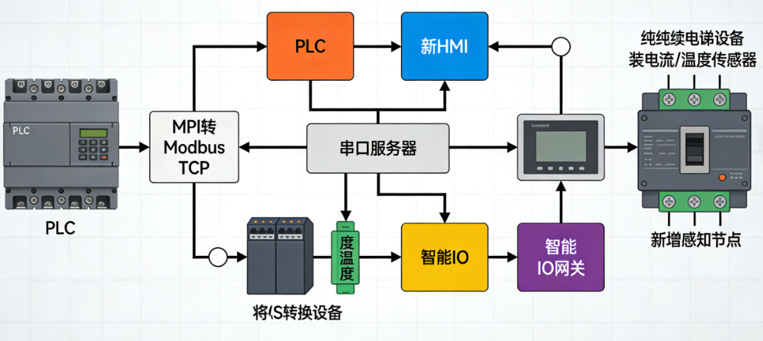 对于那些纯靠继电器控制、没有任何通讯接口的老古董,升级的核心是给它增加感知能力。
