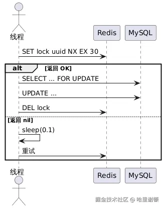 线程 -> MySQL: SELECT ... FOR UPDATE