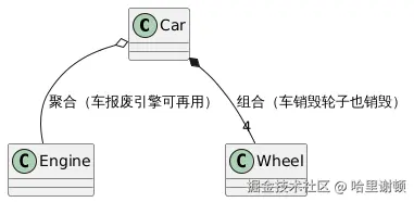 Car *-- "4" Wheel : 组合(车销毁轮子也销毁)