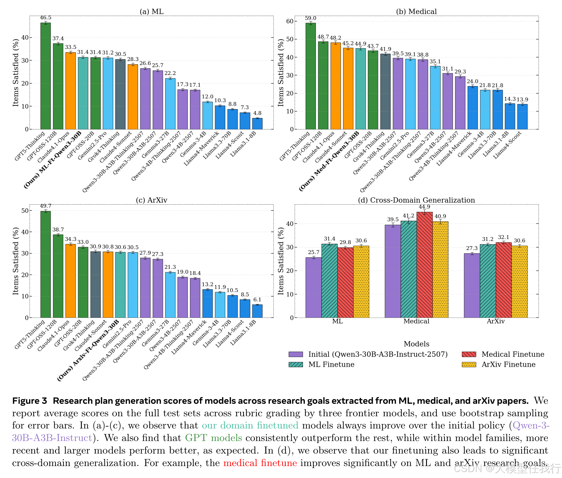 🔸研究计划生成模型在机器学习、医学和arXiv预印本等多个领域的研究目标上均表现出显著的改善,具有较强的跨领域泛化能力。