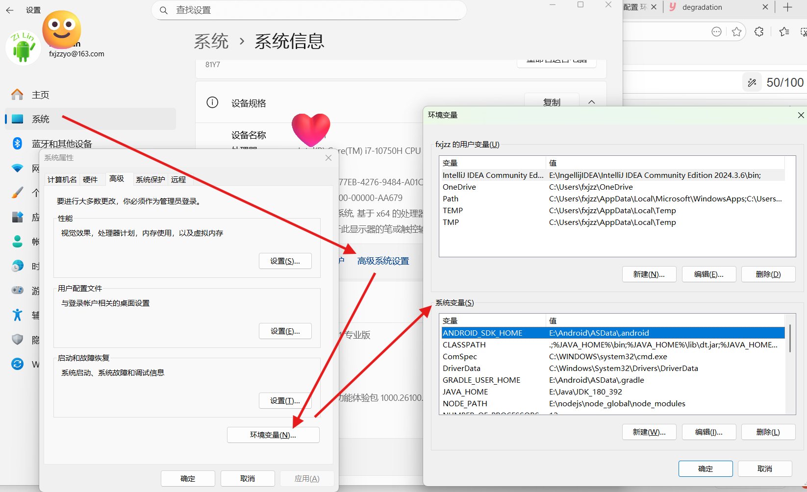 打开环境变量配置面板,步骤是:电脑设置--系统--高级系统设置--环境变量