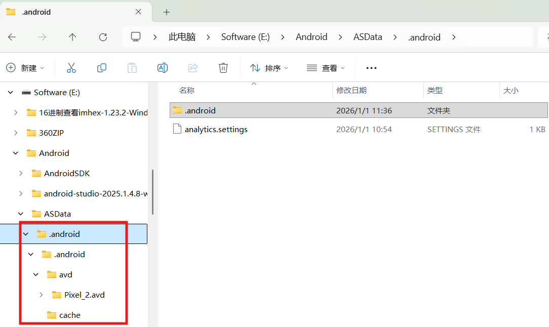 对于 .android 的修改,你会发现之前的模拟器没了,因为我们已经修改到了新的路径下。