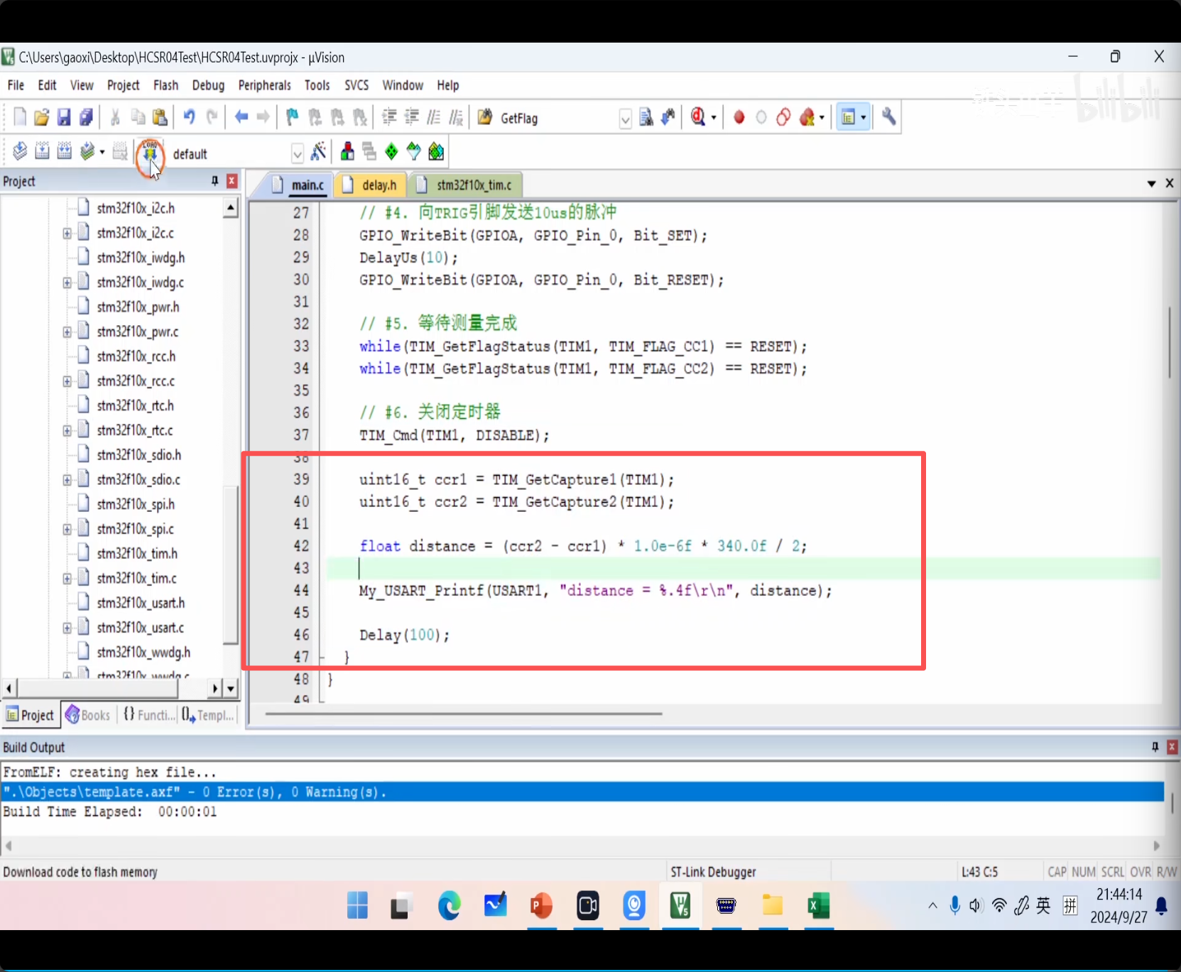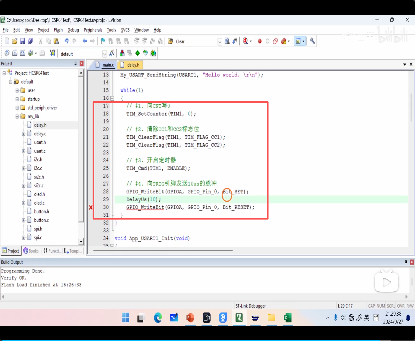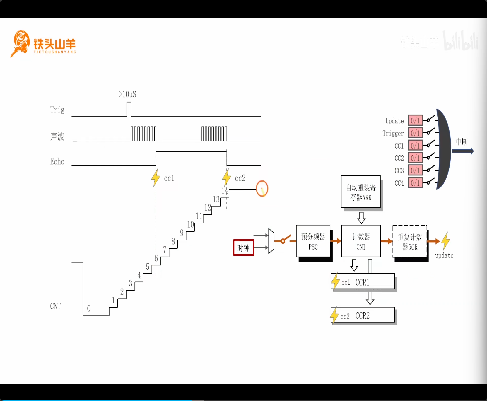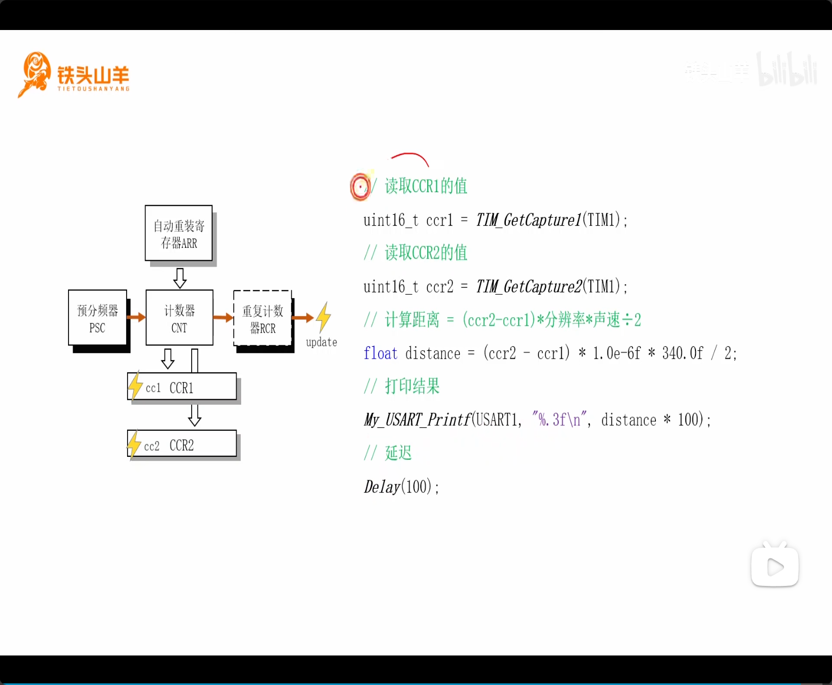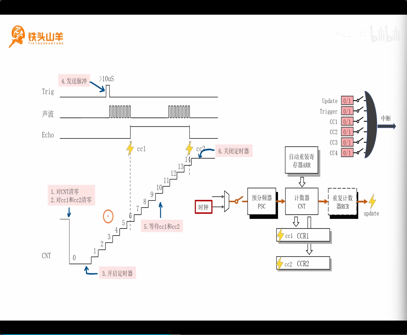 然后六步骤获取 CCR 计算距离:清零 CNT、清零 CCR、开启定时器、发送启动脉冲、等待、关闭定时器