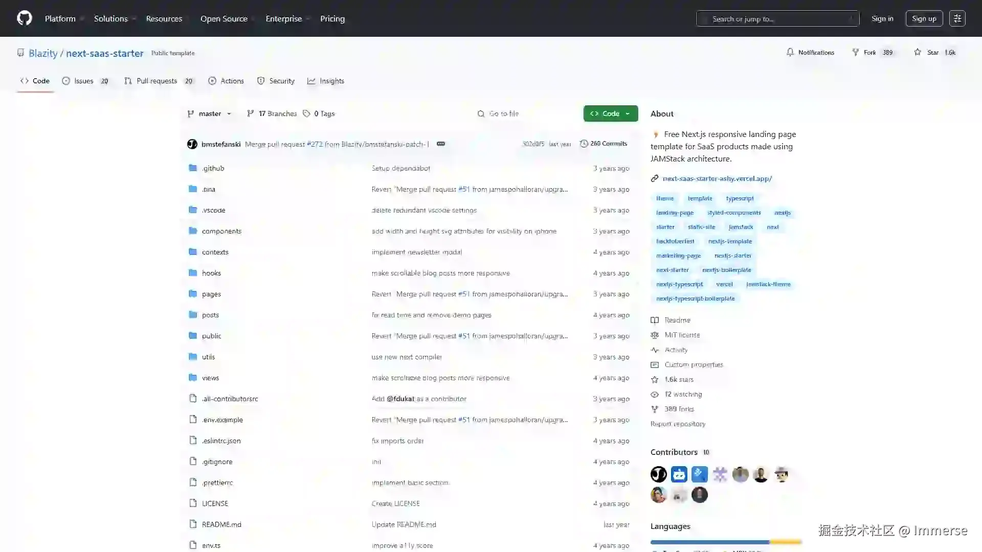 基于 Next.js 的免费响应式 SaaS 落地页模板,JAMStack 架构。