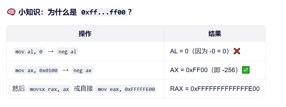 0xffffffffffffff00 通常是由以下汇编操作产生的: