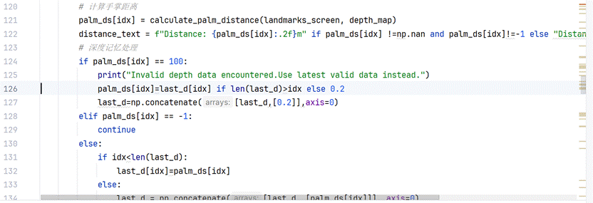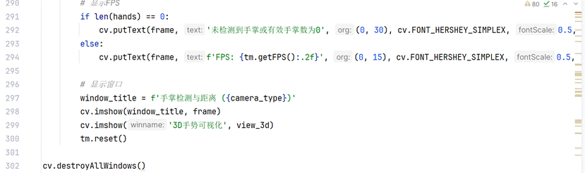 此部分的代码逻辑是整个项目的核心输入源,它是一个不断循环的流水线:获取图像 -> 检测手部 -> 分析手势 -> 计算参数 -> 发送数据。