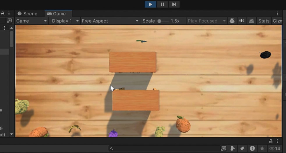 在Unity场景的初始化阶段,系统首先完成虚拟环境的构建与核心交互对象的实例化。为了模拟真实且自然的物体动态效果,场景中预置了抽屉模型及不同种类的水果模型。针对水果的运动轨迹,系统并未单纯依赖自由落体,而是通过编写自定义脚本赋予其特定的初始动量。具体而言,每个水果对象在实例化时都会被注入一个预设的三维初速度向量(Initial Velocity Vector),结合Unity物理引擎内置的重力系统,使其能够以符合物理规律的抛物线轨迹(Projectile Motion)进入玩家视野,从而增加游戏交互的动态感与可玩性。
