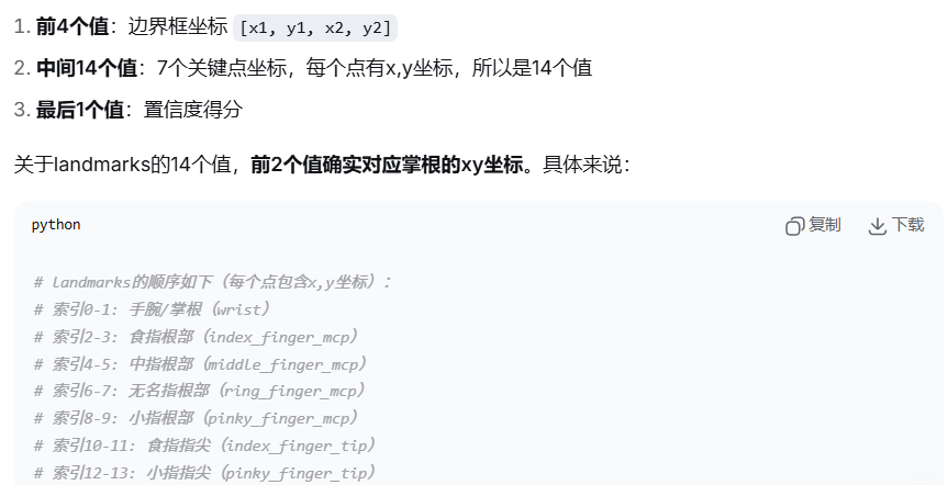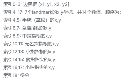 - 模型推理后,返回视野中检测到的每只手的 19维向量。