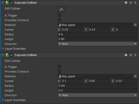 为实现水果切割的精准交互,对刀具对象(Knife)进行以下核心组件配置: