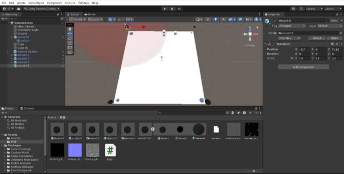 - 预制体组织:单独创建 "炸弹" 层级目录管理所有炸弹预制体,采用同一炸弹模型为基础,通过调整缩放属性区分不同规格炸弹(如 bloom0.6、bloom1.0、bloom2.5 等,数字对应缩放比例)。