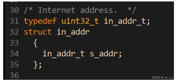 in_addr 用来表示一个 IPv4 的 IP 地址. 其实就是一个 32 位的整数;
