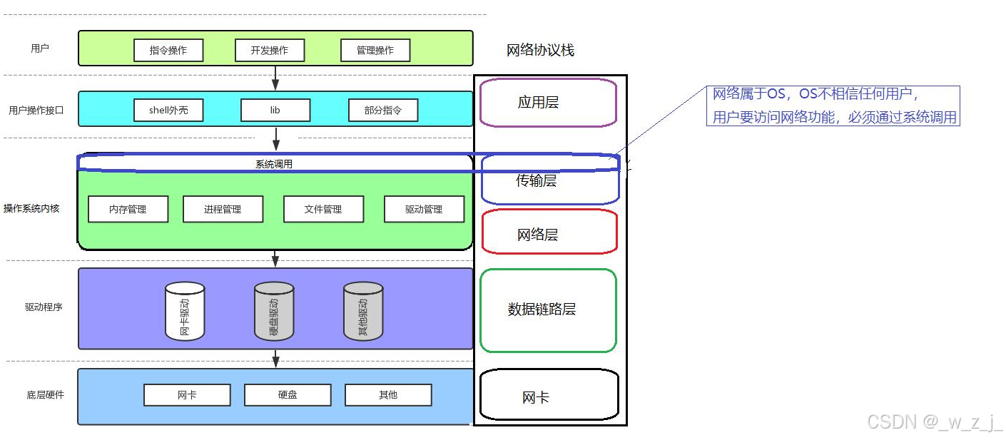 如果我们了解了系统, 也了解了网络协议栈, 我们就会清楚, 传输层是属于内核的, 那么我们要通过网络协议栈进行通信, 必定调用的是传输层提供的系统调用, 来进行的网络通信