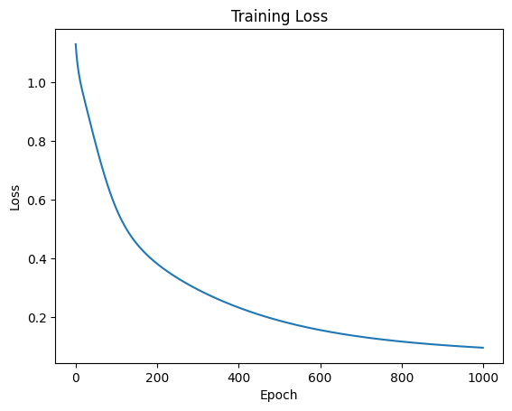CrossEntropyLoss和 优化器SGD。 - 编写 1000 轮的训练循环,并记录 Loss 变化。