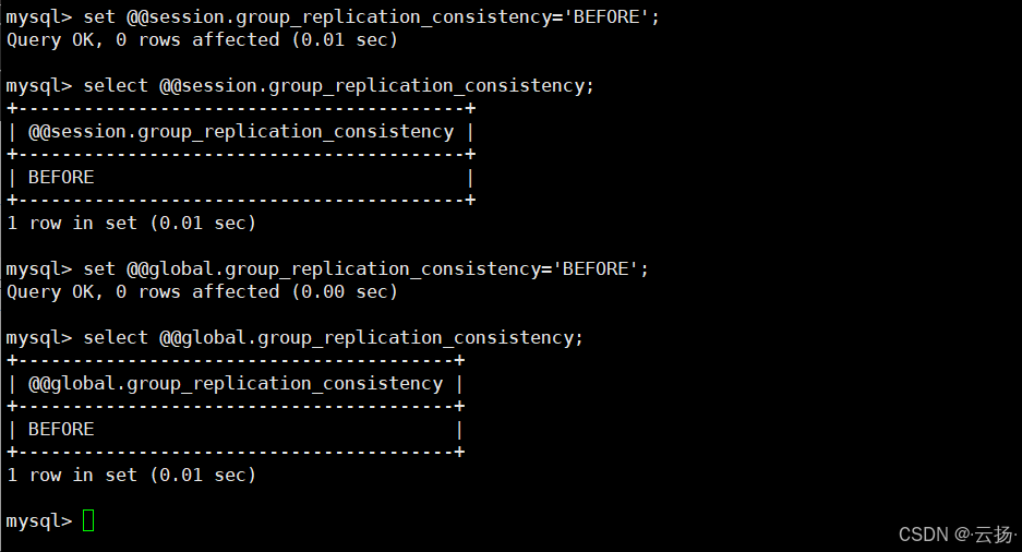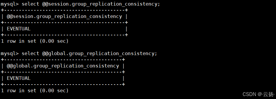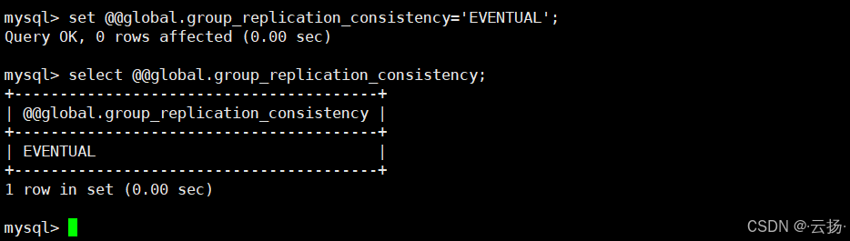 set @@global.group_replication_consistency = 'EVENTUAL';