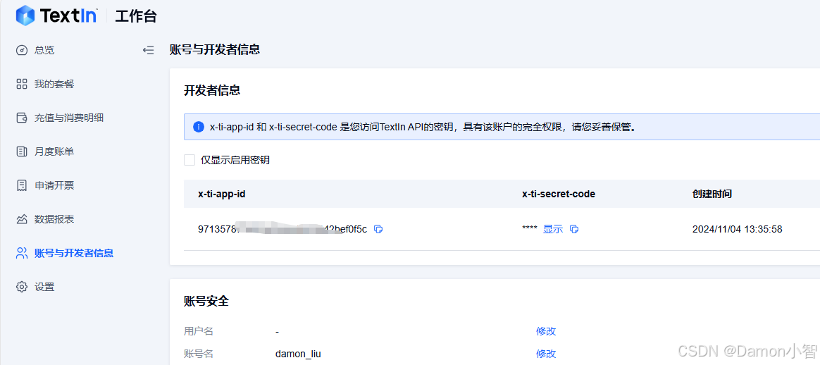 整个系统的技术架构基于火山引擎Coze平台搭建,核心由五个节点组成。第一步是环境准备,我们需要在TextIn官网申请开发者账号并创建应用,获取app_id和secret_code。