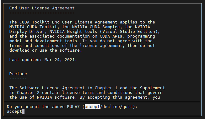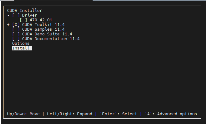 sudo sh cuda_11.4.0_470.42.01_linux.run